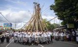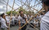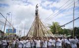 REPUBLIKA.CO.ID, DENPASAR -- Pemuda terjatuh dari atas tongkat yang disatukan saat Tradisi Mekotek di Desa Munggu, Badung, Bali, Sabtu (18/6/2022). Tradisi Mekotek itu diikuti ribuan warga desa setempat saat Hari Raya Kuningan sebagai simbol kemenangan dan untuk menolak bala.
