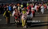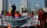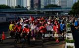 REPUBLIKA.CO.ID,JAKARTA -- Sejumlah peserta perempuan berkebaya Indonesia melakukan gerak jalan mengenakan busana kebaya saat Hari Bebas Kendaraan Bermotor (HBKB) di Jakarta, Ahad (19/6/2022).
