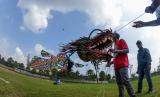 REPUBLIKA.CO.ID,BOGOR -- Peserta berusaha menerbangkan layang-layang saat Festival Layang-Layang Internasional di Summarecon Bogor, Sukaraja, Kabupaten Bogor, Jawa Barat, Ahad (19/6/2022).