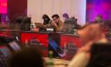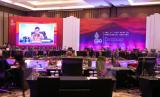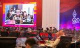 Delegasi menyimak sambutan dari Menteri Kesehatan Budi Gunadi Sadikin saat pertemuan pertama Health Ministerial Meeting (HMM) G20 Indonesia di Sleman, DI Yogyakarta, Senin (20/6/2022). Pertemuan pertama Health Ministerial Meeting (HMM) G20 tersebut membahas tiga isu prioritas yaitu resiliensi sistem ketahanan kesehatan global, pendanaan penanganan pandemi dan jejaring laboratotium untuk ‘genome sequencing’. (FOTO : ANTARA/Hendra Nurdiyansyah)