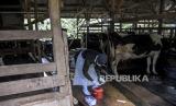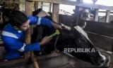REPUBLIKA.CO.ID, SUMEDANG -- Pemprov Jawa Barat memulai vaksinasi penyakit mulut dan kuku (PMK) hewan ternak sapi perah di Cilembu, Kabupaten Sumedang, Jawa Barat, Senin (20/6/2022).