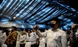 Peserta Rapat Pleno PBNU mengikuti kegiatan pembukaan Harlah 1 Abad Nahdlatul Ulama di Hotel Sultan, Jakarta, Senin (20/6/2022). Rangkaian acara peringatan 1 abad NU tersebut mengambil tema Merawat Jagat, Membangun Peradaban, yang akan diselenggarakan mulai Oktober 2022 hingga acara puncak pada tahun 2023 mendatang. Republika/Thoudy Badai (FOTO : Republika/Thoudy Badai)