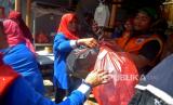 Warga membawa sampah untuk ditimbang di Bank Sampah Cempaka RW 05 Menteng Atas, Jakarta, Selasa (21/6/2022). Dalam sebulan bank sampah yang memiliki 70 nasabah ini mampu mengumpulkan sampah rata-rata hingga 1 ton. (FOTO : Prayogi/Republika.)