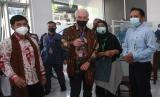 REPUBLIKA.CO.ID, Wakil Menteri Kesehatan Dante Saksono (kiri) berbincang dengan Direktur Eksekutif Global Fund Peter Sands (kanan) saat mengunjungi Puskesmas Banguntapan I, Bantul, DI Yogyakarta, Selasa (21/6/2022).