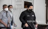 Menteri BUMN Erick Thohir berjalan keluar ruangan usai bertakziah di Gedung Pakuan, Jalan Pasir Kaliki, Kota Bandung, Selasa (21/6/2022). Menteri BUMN Erick Thohir bersama istri bertakziah untuk menyampaikan belasungkawa secara langsung atas meninggalnya Emmeril Kahn Mumtadz atau Eril, putra sulung Gubernur Jawa Barat Ridwan Kamil. Foto: Republika/Abdan Syakura (FOTO : REPUBLIKA/ABDAN SYAKURA)