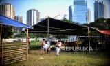 REPUBLIKA.CO.ID,JAKARTA -- Warga melihat hewan kurban di tenda penjualan hewan kurban di kawasan Kuningan, Jakarta, Selasa (21/6/2022).