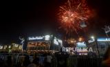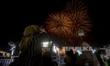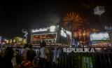 REPUBLIKA.CO.ID,JAKARTA -- Sejumlah pengunjung melihat pertunjukan kembang api pada acara Jakarta Fair 2022 di Jakarta International Expo, Jakarta, Selasa (21/6/2022).