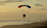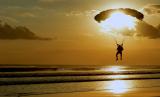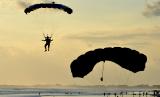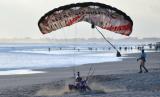 REPUBLIKA.CO.ID,BADUNG -- Penerjun bersiap melakukan pendaratan pada hari pertama pelaksanaan Bali International Boogie 2022 di Pantai Mesari, Seminyak, Badung, Bali, Selasa (21/6/2022).