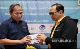 Direktur Standardisai Perangkat Pos dan Informatika Ditjen SDPPI Kemkominfo Mulyadii (kiri) dan Ketua Umum ASIOTI Teguh Prasetya, membahas perangkat Gateway IOT, disela Seminar Forecast Agriculture, Farm, and Fisheries Business with IoT di Surabaya, Rabu (22/6/2022) (FOTO : Dok ASIOTI)