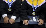 Sejumlah siswa penyandang disabilitas mengikuti prosesi wisuda secara tatap muka atau luring di SLBN Cicendo, Jalan Cicendo, Kota Bandung, Kamis (23/6/2022). SLBN Cicendo kembali menggelar wisuda secara tatap muka untuk jenjang TKLB, SDLB, SMPLB dan SMALB dengan jumlah 31 wisudawan dan wisudawati setelah dua tahun tidak digelar akibat pandemi Covid-19. (FOTO : REPUBLIKA/ABDAN SYAKURA)