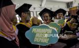 REPUBLIKA.CO.ID, BANDUNG -- Sejumlah siswa penyandang disabilitas berfoto disela prosesi wisuda secara tatap muka atau luring di SLBN Cicendo, Jalan Cicendo, Kota Bandung, Kamis (23/6/2022).