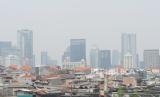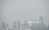 REPUBLIKA.CO.ID, JAKARTA -- Layar yang menunjukan peringkat indeks kualitas udara dengan latar belakang lanskap gedung bertingkat di Jakarta, Kamis (23/6/2022). Berdasarkan data Index Quality Air, kualitas udara DKI Jakarta pada Kamis (23/6/2022) pukul 09.56 WIB berada di peringkat pertama terburuk di dunia atau berada di angka 171 dengan kategori tidak sehat.