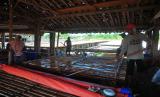 Petani menuangkan air ke atas klakah atau bilah bambu saat produksi garam Jono di Desa Jono, Tawangharjo, Grobogan, Jawa Tengah, Jumat (24/6/2022). Pengelolaan garam Jono telah dimulai di masa kolonial Belanda dengen keunggulan rasa lebin gurih karena bahan bakunya berasal dari air sumur sekitar dan sekarang terdapat 50 petani yang memproduksi garam itu dengan harga jual Rp10.000 per kilogram. (FOTO : ANTARA/Yusuf Nugroho)