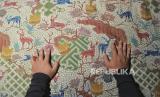 Perajin menata kain batik gajah mungkur di Rumah Gajah Mungkur, Kampung Kemasan, Gresik, Jawa Timur, Jumat (24/6/2022). Batik gajah mungkur yang bermotif kearifan lokal Kota Gresik seperti pudhak, bandeng, rusa bawean, dan damar kurung itu dijual dengan harga Rp225 ribu hingga Rp17 juta per lembar tergantung motif dan tingkat kesulitan. (FOTO : ANTARA/Rizal Hanafi)
