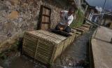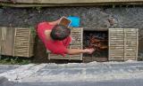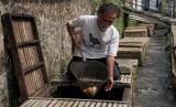 Warga memberi makan ikan peliharaannya di RT 4 RW 4, Desa Bawang, Kecamatan Bawang, Kabupaten Batang, Jawa Tengah, Jumat (24/6/2022). Sejumlah warga di wilayah itu memanfaatkan sungai kecil untuk budidaya ikan dalam keramba dengan berbagai jenis ikan nila, ikan mas dan lainnya untuk kemudian dijual kepada konsumen dengan harga rata-rata Rp40 ribu-Rp80 ribu per kilogram. (FOTO : ANTARA/Harviyan Perdana Putra)