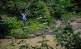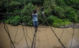 REPUBLIKA.CO.ID,CIANJUR -- Warga menyeberangi sungai menggunakan jembatan kawat besi di Desa Salamnunggal, Kecamatan Cibeber, Kabupaten Cianjur, Jawa Barat, Sabtu (25/6/2022).