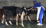 REPUBLIKA.CO.ID,SURABAYA -- Petugas Dinas Ketahanan Pangan dan Pertanian Kota Surabaya mempersiapkan vaksin penyakit mulut dan kuku (PMK) sapi untuk disuntikkan kepada hewan ternak sapi di salah satu peternakan sapi perah di kawasan Bendul Merisi, Surabaya, Jawa Timur, Sabtu (25/6/2022).