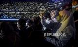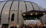 Warga menghadiri acara puncak perayaan HUT ke-495 DKI Jakarta di Jakarta International Stadium, Jakarta, Sabtu (25/6/2022). Malam puncak Jakarta Hajatan dimeriahkan oleh acara konser yang menampilkan sejumlah musisi seperti grup band Padi, Ungu dan Wali serta penyanyi solo Reza Artamevia, Mahalini, Lea Simanjuntak, Saykoji dan Kojek. (FOTO : Republika/Putra M. Akbar)