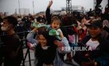 Warga menonton penampilan Saykoji pada acara puncak perayaan HUT ke-495 DKI Jakarta di Jakarta International Stadium, Jakarta, Sabtu (25/6/2022). Malam puncak Jakarta Hajatan dimeriahkan oleh acara konser yang menampilkan sejumlah musisi seperti grup band Padi, Ungu dan Wali serta penyanyi solo Reza Artamevia, Mahalini, Lea Simanjuntak, Saykoji dan Kojek. Republika/Putra M. Akbar (FOTO : Republika/Putra M. Akbar)