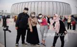 Warga berfoto saat menghadiri acara puncak perayaan HUT ke-495 DKI Jakarta di Jakarta International Stadium, Jakarta, Sabtu (25/6/2022). Malam puncak Jakarta Hajatan dimeriahkan oleh acara konser yang menampilkan sejumlah musisi seperti grup band Padi, Ungu dan Wali serta penyanyi solo Reza Artamevia, Mahalini, Lea Simanjuntak, Saykoji dan Kojek. Republika/Putra M. Akbar (FOTO : Republika/Putra M. Akbar)