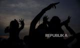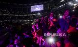 Sejumlah warga saat menonton konser pada malam puncak perayaan HUT ke-495 DKI Jakarta, di Jakarta International Stadium (JIS), Jakarta, Sabtu (25/6/2022). Malam puncak Jakarta Hajatan yang bertemakan Collaborate, Accelerate, Elevate itu dihelat pagelaran konser yang dimeriahkan oleh sejumlah musisi seperti grup band Ungu, Padi dan Wali serta penyanyi solo Reza Artamevia, Mahalini, Lea Simanjuntak dan Kojek. Republika/Putra M. Akbar (FOTO : Republika/Putra M. Akbar)