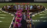 Sejumlah penari saat tampil pada malam puncak perayaan HUT ke-495 DKI Jakarta, di Jakarta International Stadium (JIS), Jakarta, Sabtu (25/6/2022). Malam puncak Jakarta Hajatan yang bertemakan Collaborate, Accelerate, Elevate itu dihelat pagelaran konser yang dimeriahkan oleh sejumlah musisi seperti grup band Ungu, Padi dan Wali serta penyanyi solo Reza Artamevia, Mahalini, Lea Simanjuntak dan Kojek. Republika/Putra M. Akbar (FOTO : Republika/Putra M. Akbar)
