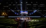 Sejumlah penari tampil pada malam puncak perayaan HUT ke-495 DKI Jakarta, di Jakarta International Stadium (JIS), Jakarta, Sabtu (25/6/2022). Malam puncak Jakarta Hajatan yang bertemakan Collaborate, Accelerate, Elevate itu dihelat pagelaran konser yang dimeriahkan oleh sejumlah musisi seperti grup band Ungu, Padi dan Wali serta penyanyi solo Reza Artamevia, Mahalini, Lea Simanjuntak dan Kojek. Republika/Putra M. Akbar (FOTO : Republika/Putra M. Akbar)