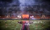 Suasana panggung jelang acara puncak perayaan HUT ke-495 DKI Jakarta di Jakarta International Stadium, Jakarta, Sabtu (25/6/2022). Malam puncak Jakarta Hajatan dimeriahkan oleh acara konser yang menampilkan sejumlah musisi seperti grup band Padi, Ungu dan Wali serta penyanyi solo Reza Artamevia, Mahalini, Lea Simanjuntak, Saykoji dan Kojek. Republika/Putra M. Akbar (FOTO : Republika)