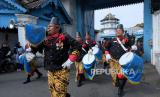 REPUBLIKA.CO.ID, SOLO -- Sejumlah prajurit Keraton Kasunanan Surakarta Hadiningrat dari Lembaga Dewan Adat melakukan atraksi kirab di kawasan keraton setempat, Solo, Jawa Tengah, Ahad (26/6/2022).
