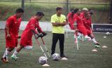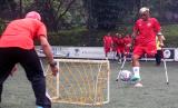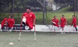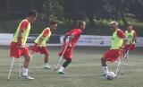 REPUBLIKA.CO.ID,JAKARTA -- Sejumlah pesepak bola Timnas Amputasi Indonesia melakukan latihan perdana jelang Piala Dunia Amputasi 2022 di Sports Club Serena Mansion, Jakarta Selatan, Senin (27/6/2022).