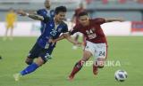 REPUBLIKA.CO.ID, Pesepak bola Bali United Eber Bessa (kiri) berebut bola dengan pesepak bola Visakha FC Mohammed Faeez Khan dalam pertandingan sepak bola Grup G Piala AFC 2022 di Stadion I Wayan Dipta, Gianyar, Bali, Senin (27/6/2022). Bali United kalah dari Visakha FC dengan skor 2-5.