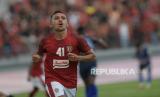 Pesepak bola Bali United Irfan Jaya melakukan selebrasi setelah berhasil membobol gawang Visakha FC dalam pertandingan sepak bola Grup G Piala AFC 2022 di Stadion I Wayan Dipta, Gianyar, Bali, Senin (27/6/2022). Bali United kalah dari Visakha FC dengan skor 2-5.  (FOTO : ANTARA/Nyoman Budhiana)