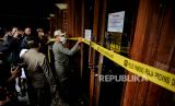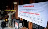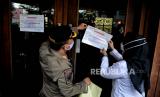 Petugas Satpol PP saat melakukan penyegelan di salah satu bar-resto Holywings di Jakarta, Selasa (28/6/2022). Pemprov DKI Jakarta melalui Satuan Polisi Pamong Praja (Satpol PP) melakukan penutupan secara serentak terhadap 12 outlet perusahaan bar dan resto Holywings di Jakarta hari ini. Penutupan tersebut dilakukan setelah ditemukannya sejumlah pelanggaran diantaranya pelanggaran izin usaha atau belum memiliki sertifikat standar KBLI 56301 jenis usaha Bar yang telah terverifikasi. Republika/Thoudy Badai (FOTO : Republika/Thoudy Badai)