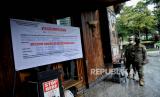 Petugas Satpol PP bersama Dinas Pariwisata dan Ekonomi Kreatif, serta TNI melakukan penyegelan di salah satu bar-resto Holywings di Jakarta, Selasa (28/6/2022). Pemprov DKI Jakarta melalui Satuan Polisi Pamong Praja (Satpol PP) melakukan penutupan secara serentak terhadap 12 outlet perusahaan bar dan resto Holywings di Jakarta hari ini. Penutupan tersebut dilakukan setelah ditemukannya sejumlah pelanggaran diantaranya pelanggaran izin usaha atau belum memiliki sertifikat standar KBLI 56301 jenis usaha Bar yang telah terverifikasi. Republika/Thoudy Badai (FOTO : Republika/Thoudy Badai)