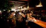 Petugas Satpol PP bersama Dinas Pariwisata dan Ekonomi Kreatif, serta TNI melakukan penyegelan di salah satu bar-resto Holywings di Jakarta, Selasa (28/6/2022). Pemprov DKI Jakarta melalui Satuan Polisi Pamong Praja (Satpol PP) melakukan penutupan secara serentak terhadap 12 outlet perusahaan bar dan resto Holywings di Jakarta hari ini. Penutupan tersebut dilakukan setelah ditemukannya sejumlah pelanggaran diantaranya pelanggaran izin usaha atau belum memiliki sertifikat standar KBLI 56301 jenis usaha Bar yang telah terverifikasi. Republika/Thoudy Badai (FOTO : Republika/Thoudy Badai)