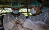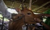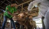 REPUBLIKA.CO.ID,PALEMBANG -- Dokter hewan dari Dinas Peternakan dan Ketahanan Pangan Kota Palembang dibantu peternak menyuntikkan vaksin penyakit mulut dan kuku (PMK) kepada sapi saat Vaksinasi PMK Hewan Ternak di Palembang, Sumatera Selatan, Selasa (28/6/2022).