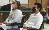 Terdakwa kasus dugaan pelanggaran Undang-Undang (UU) ITE Adam Deni Gearaka (kanan) dan Ni Made Dwita (tengah) menjalani sidang pembacaan putusan di Pengadilan Negeri Jakarta Utara, Selasa (28/6/2022). Majelis hakim memvonis terdakwa Adam Deni Gearaka dan Ni Made Dwita dengan hukuman empat tahun penjara dan denda Rp1 miliar subsider lima bulan kurungan terkait kasus dugaan pelanggaran UU ITE mengunggah dokumen pembelian sepeda milik Wakil Ketua Komisi III DPR Ahmad Sahroni. (FOTO : ANTARA/Indrianto Eko Suwarso)
