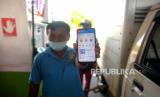 REPUBLIKA.CO.ID, YOGYAKARTA -- Supir menunjukkan aplikasi Mypertamina yang nantinya digunakan untuk membeli bahan bakar minyak (BBM) subsidi Pertalite dan Solar di SPBU Pertamina Retail, Yogyakarta, Rabu (28/6/2022).