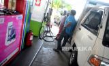 Petugas mengisi bahan bakar minyak (BBM) Pertalite di SPBU Pertamina Retail, Yogyakarta, Rabu (28/6/2022). Mulai 1 Juli mendatang kawasan Yogyakarta menjadi salah satu lokasi uji coba penjualan BBM subsidi Pertalite dan Solar melalui aplikasi Mypertamina. Namun, pembelian BBM melalui sistem aplikasi MyPertamina tidak diperuntukan untuk kendaraan roda dua atau motor. Uji coba ini hanya menyasar kendaraan roda empat atau lebih. (FOTO : Wihdan Hidayat / Republika)