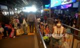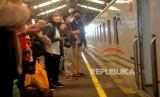 Penumpang antre naik gerbong kereta api di Stasiun Besar Yogyakarta, Rabu (28/6/2022). PT KAI Daerah Operasi 6 Yogyakarta menambah empat perjalanan kereta api untuk memenuhi kebutuhan pelanggan selama masa libur sekolah 2022. (FOTO : Wihdan Hidayat / Republika)