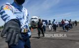 REPUBLIKA.CO.ID, MEDAN -- Petugas mengevakuasi sejumlah penumpang saat simulasi Force Down atau penurunan paksa pesawat asing di Lanud Soewondo, Kota Medan, Sumatera Utara, Kamis (30/6/2022).