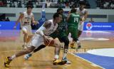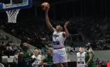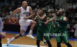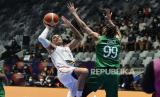 REPUBLIKA.CO.ID, JAKARTA -- Pebasket Timnas Indonesia Brandon Jawato melakukan shooting melewati hadangan pemain Arab Saudi dalam pertandingan window ketiga Kualifikasi FIBA World Cup 2023 Grup C Zona Asia di Istora Senayan, Jakarta, Jumat (1/7/2022). Pada pertandingan itu Indonesia kalah dengan skor 67-69.