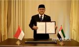 Menteri Perdagangan (Mendag) Zulkifli Hasan menandatangani Persetujuan Kemitraan Ekonomi Komprehensif Indonesia–Uni Emirat Arab (Indonesia–United Arab Emirates Comprehensive Economic Partnership Agreement (IUAE–CEPA) di Abu Dhabi, UEA, Jumat (1/7/2022). Penandatanganan IUAE–CEPA dilakukan oleh Menteri Perdagangan RI Zulkifli Hasan dan Menteri Ekonomi Uni Emirat Arab (UEA) Abdulla bin Touq Al Marri. (FOTO : Dok Kemendag)