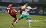 Penyerang Timnas Indonesia U19 Rabbani Tasnim Siddiq berebut bola dengan pemain Vietnam saat pertandingan Piala AFF U19 di Stadion Patriot Candrabhaga, Bekasi, Jawa Barat, Sabtu (2/7/2022). Pertandingan berakhir imbang tanpa gol. (FOTO : Republika/Edwin Putranto)
