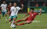 Penyerang Timnas Indonesia U19 Razza Fachrezi Aziz berebut bola dengan pemain Vietnam saat pertandingan Piala AFF U19 di Stadion Patriot Candrabhaga, Bekasi, Jawa Barat, Sabtu (2/7/2022). Pertandingan berakhir imbang tanpa gol. (FOTO : Republika/Edwin Putranto)