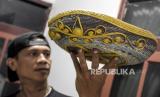 Perajin menunjukkan wadah buah dari kertas koran bekas di bengkel kerja (workshop) di kawasan Cibabat, Cimahi Utara, Kota Cimahi, Ahad (3/7/2022). Berbagai jenis kerajinan daur ulang berbahan dasar kertas koran bekas berupa tas, dompet, wadah buah, hiasan dinding dan aneka miniatur yang dijual dengan harga Rp90 ribu hingga Rp1 juta tersebut telah menembus pasar ekspor di Singapura, Hongkong dan Australia. (FOTO : REPUBLIKA/ABDAN SYAKURA)