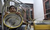 Perajin menunjukkan kertas koran bekas untuk dijadikan berbagai kerajinan di bengkel kerja (workshop) di kawasan Cibabat, Cimahi Utara, Kota Cimahi, Ahad (3/7/2022). Berbagai jenis kerajinan daur ulang berbahan dasar kertas koran bekas berupa tas, dompet, wadah buah, hiasan dinding dan aneka miniatur yang dijual dengan harga Rp90 ribu hingga Rp1 juta tersebut telah menembus pasar ekspor di Singapura, Hongkong dan Australia. (FOTO : REPUBLIKA/ABDAN SYAKURA)