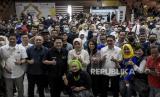 Menteri BUMN Erick Thohir (ketiga kiri) bersama Menteri Koperasi dan UKM Teten Masduki (kedua kiri), Ketua Umum KADIN Arsjad Rasjid (keempat kanan), Rektor Unpad Rina Indiastuti (keempat kiri) dan Ketua Umum IKA Unpad Irawati Hermawan (kelima) melakukan foto bersama saat menghadiri silaturahmi dan halal bi halal IKA Unpad di Graha Aula Sanusi Hardjadinata Kampus Unpad, Jalan Dipati Ukur, Kota Bandung, Ahad (3/7/2022). (FOTO : REPUBLIKA/ABDAN SYAKURA)