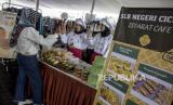 Pengunjung memilih produk kuliner saat acara silaturahmi dan halal bi halal IKA Unpad di halaman Kampus Unpad, Jalan Dipati Ukur, Kota Bandung, Ahad (3/7/2022). (FOTO : REPUBLIKA/ABDAN SYAKURA)
