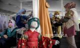 Pengunjung melihat produk fesyen saat acara silaturahmi dan halal bi halal IKA Unpad di halaman Kampus Unpad, Jalan Dipati Ukur, Kota Bandung, Ahad (3/7/2022). (FOTO : REPUBLIKA/ABDAN SYAKURA)